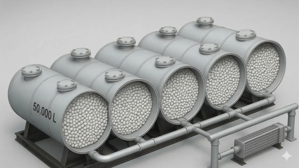 PGC 5.0 with CTES + MPC systems generate cooling during efficient hours, store the cool energy in phase changing materials which are kept in large insulated customised tanks. These large tanks can also be buried underground which saves space and effective utilization of land.